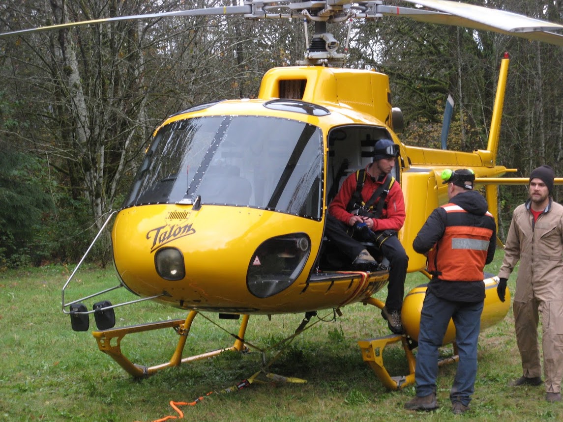 Unfortunately the weather did not cooperate; weather moved in, including rain, snow and fog. The the lack of visibility caused the first scenario to be scrapped. The team adapted, and continued with long line “evolutions” (a cycle consisting of hooking up the helicopter, lifting off, accelerating to cruising speed and then returning to the landing zone) under various conditions.