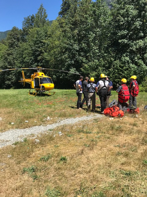Using long line rescue with the assistance of Talon Helicopters we inserted rescuers and a team paramedic to assist the subject, and flew her to a waiting ambulance. While SAR volunteers were hiking out with the rest of the subject’s family members, one of them began experiencing an allergic reaction as well – to another wasp sting.